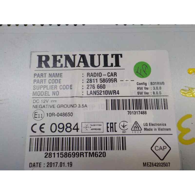 281158699R 276660 MLV16821166. Recambio de pantalla multifuncion para renault clio iv grandtour 1.2 16v referencia OEM IAM