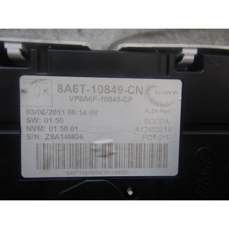220KM/H6000R.P.M. 30PINS 8A6T10849CN MLV15292717. Recambio de cuadro instrumentos para ford fiesta (cb1) titanium referencia OEM IAM