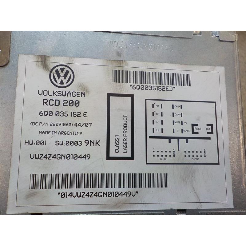 6Q0035152E MLV15731094. Recambio de sistema audio / radio cd para volkswagen polo (9n3) 1.4 tdi referencia OEM IAM 6Q0035152E