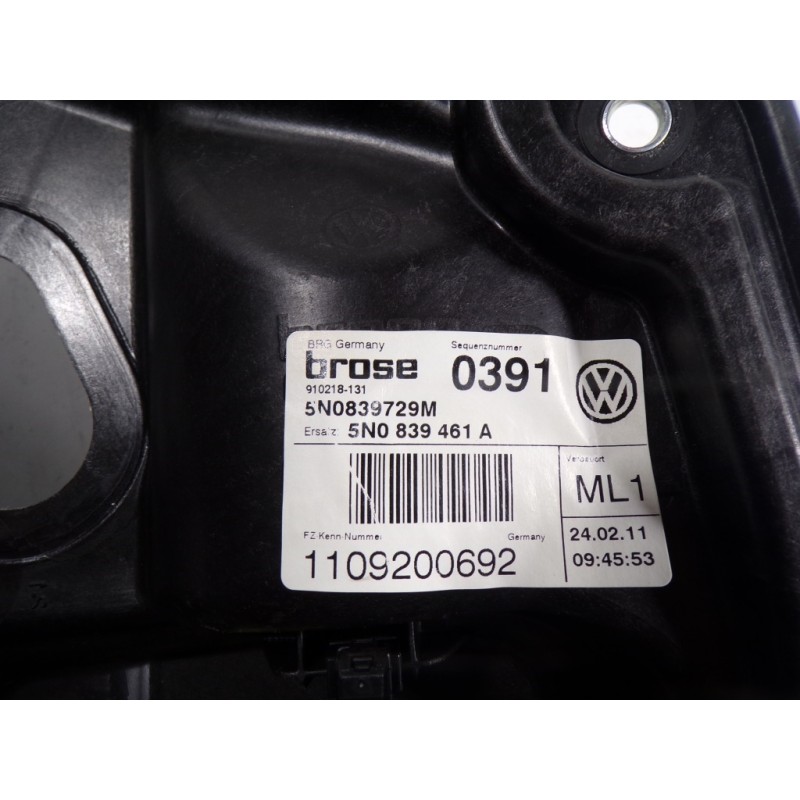 5N0839729M 5N0839461A BROSE 910218131 SIN MOTOR MLV17034414 910218131. Recambio de elevalunas trasero izquierdo para volkswagen tiguan (5n1) 2.0 tdi referencia OEM IAM 5N0839461A 5N0839729M 910218131