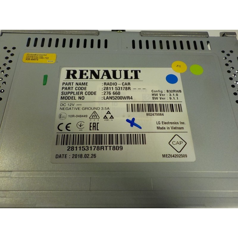 281153178R MLV17219708 281153626R. Recambio de sistema audio / radio cd para renault captur 1.2 tce energy referencia OEM IAM 281153626R 281153178R