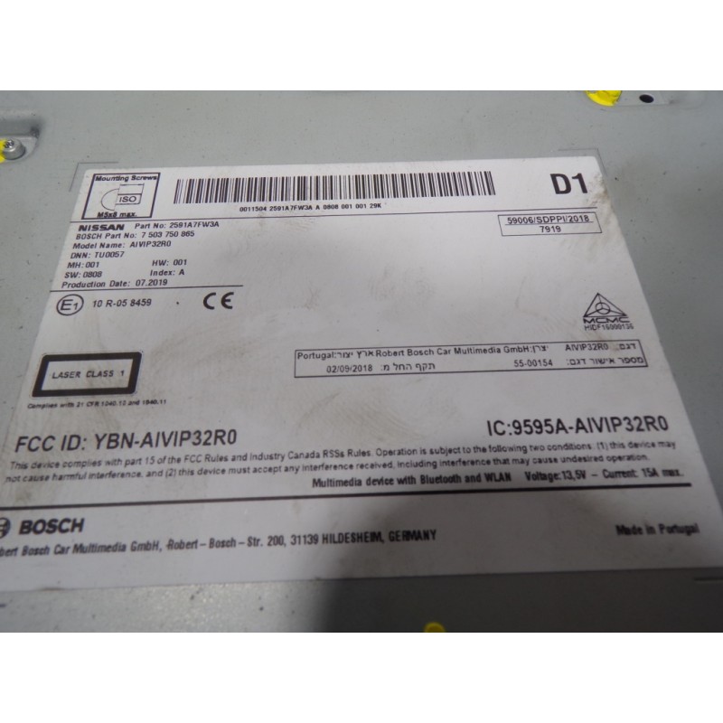 CON DESPERFECTOS PRECIO AJUSTADO 10R058459 7503750865 2591A7FW3A MLV17219930 2591A7FW3B. Recambio de sistema audio / radio cd para nissan qashqai (j11) acenta 4x4 referencia OEM IAM 2591A7FW3A 2591A7FW3A
