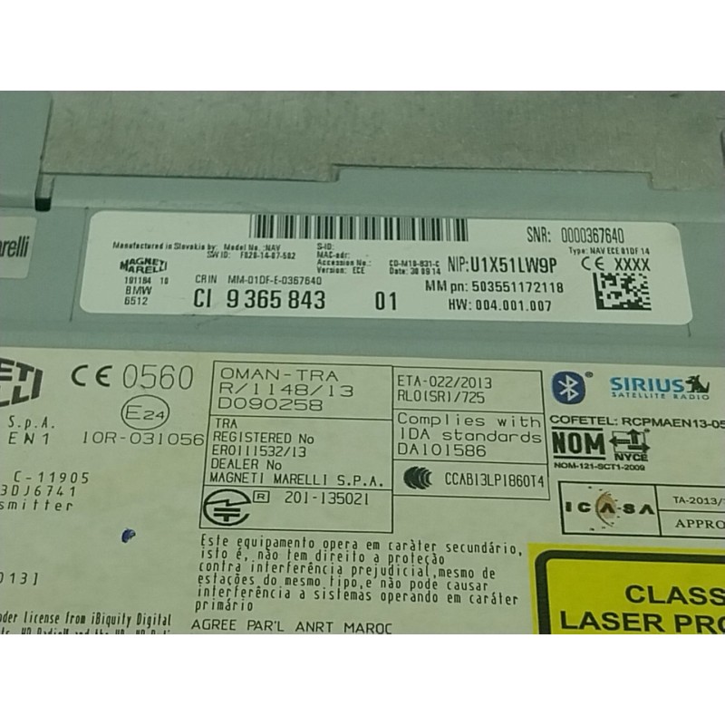 503551172118. Recambio de sistema audio / radio cd para bmw 3 (f30, f80) 320 d referencia OEM IAM 65129874336 936584301