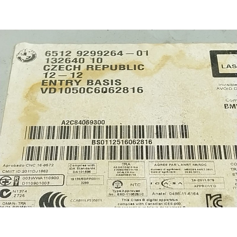 Recambio de sistema audio / radio cd para bmw 1 (f20) 116 d referencia OEM IAM 65129270359 929926401