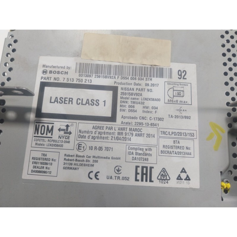 25915BV92A / CON DESPERFECTOS. Recambio de sistema navegacion gps para nissan juke (f15) 1.2 dig-t referencia OEM IAM 25915BV92A 7513750213