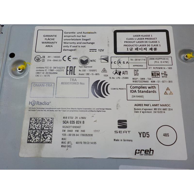 I CARGADOR DE C.D. 5QA035824B MLV16021399. Recambio de modulo electronico para seat leon st (5f8) 1.6 tdi referencia OEM IAM 5QA035824B 5QA035824B